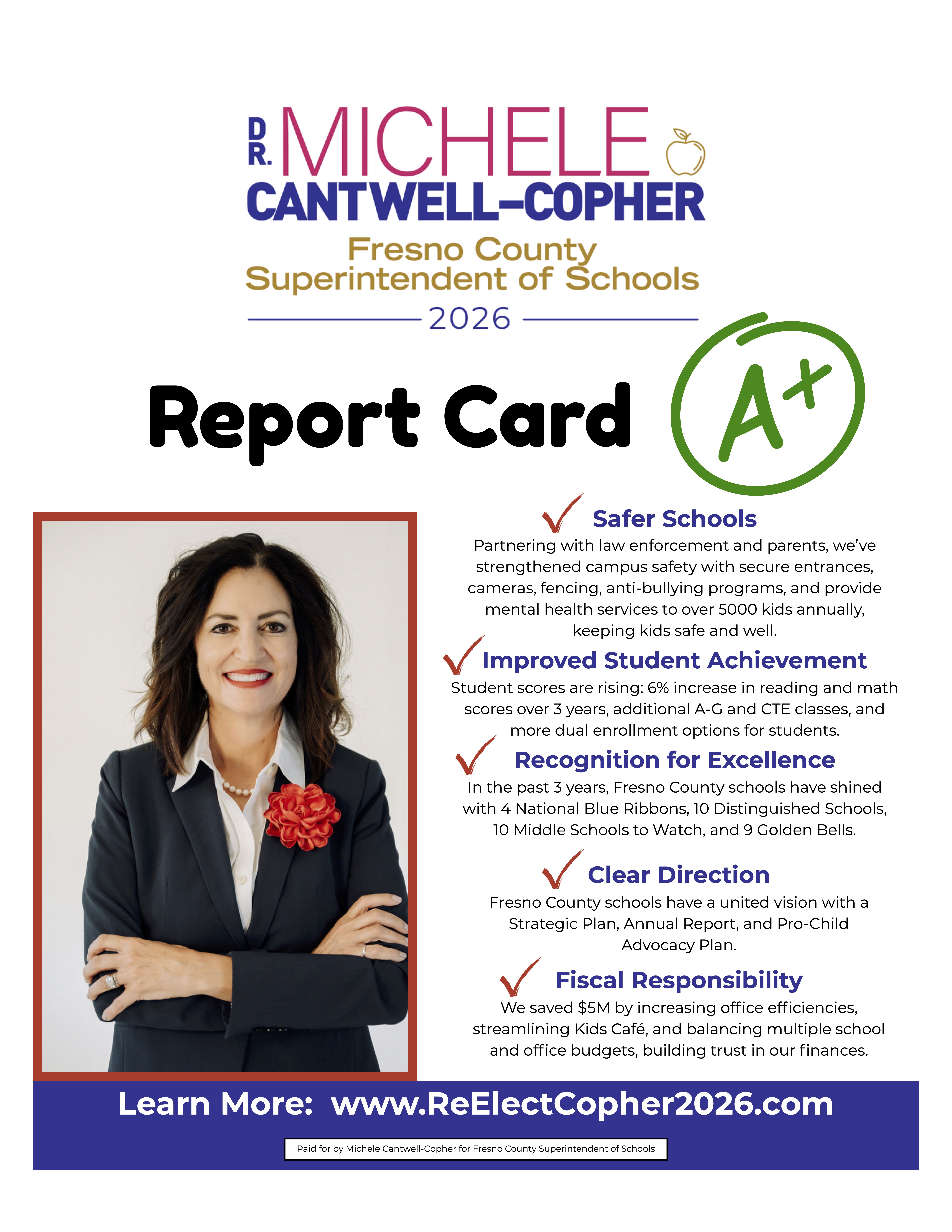 Let’s keep Fresno County schools moving forward — support Dr. Copher in June 2026!